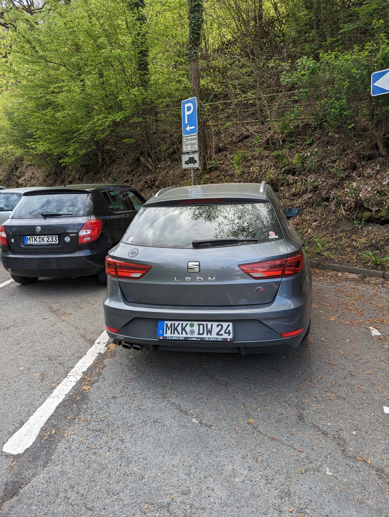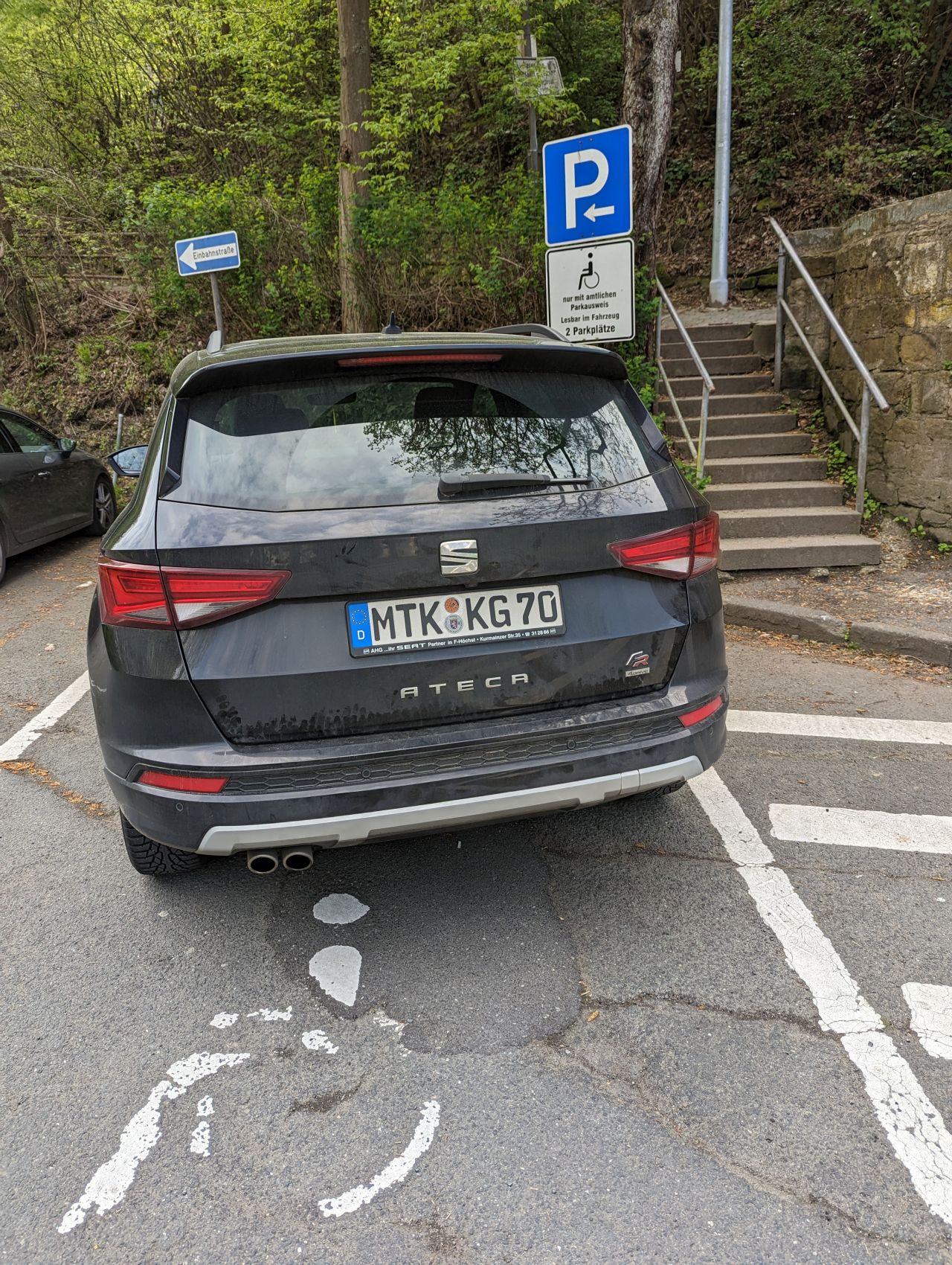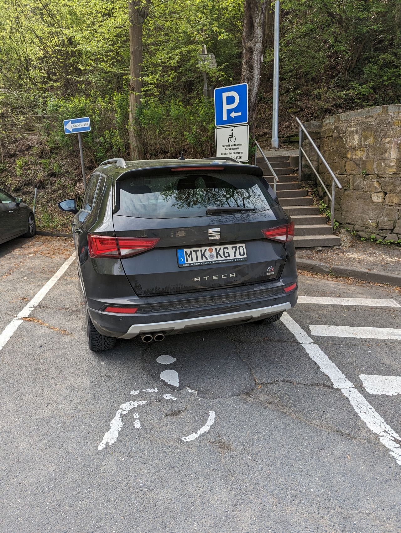 Zu dem Fahrzeug MTK-KG 70 war noch eine weibliche Person anwesend. Ich fragte sie, ob sie nicht wegfahren möchte weil sie auf einem Behindertenparkplatz stehe.